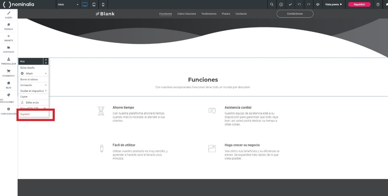 Borrar opciones en plantilla en blanco