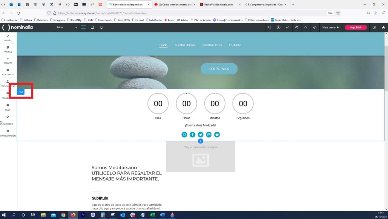 Establecer video como fondo de fila en Simply Site