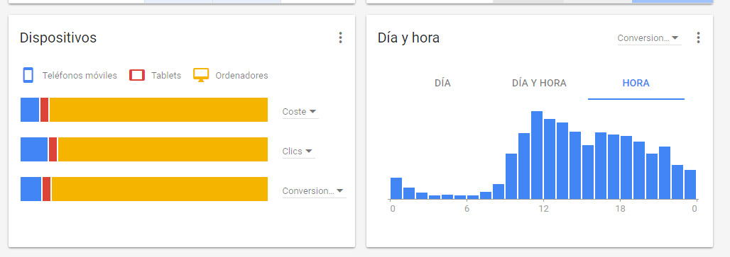 Tráfico según dispositivo y horas del día en Google Adwords